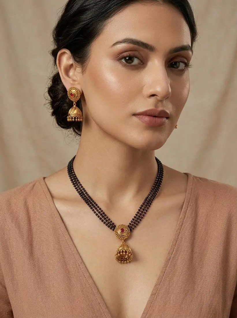 4 Layer karimani with jhumka pendant and earring