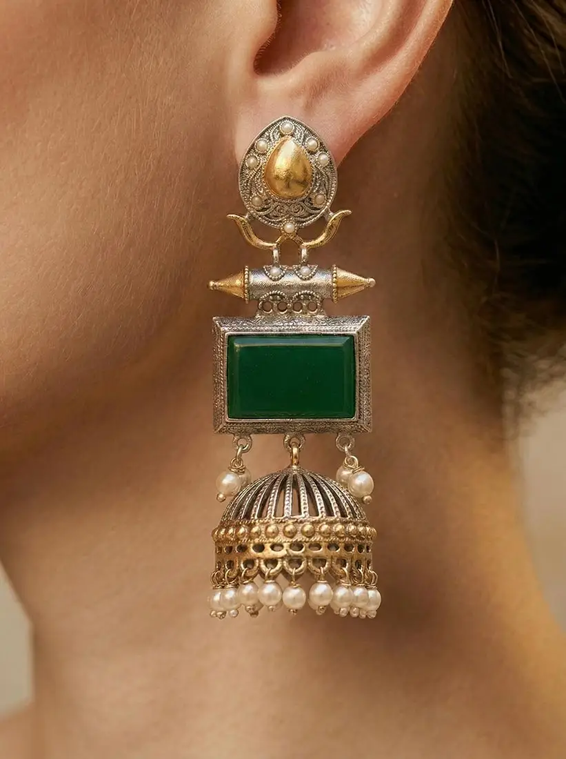 Antique Silver and green onyx stone with pearl dangling